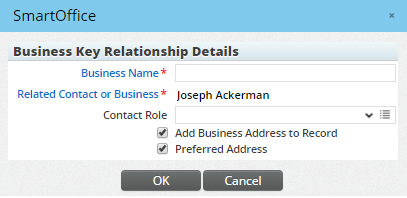 and select New 'Business Relationship' record to open the Business Key Relationship Details dialog box.