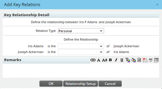 - Search for and select the contact to open the Key Relationship Detail dialog box.