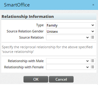 - From the Source Relation Gender drop-down list, specify whether the relationship is intended for either gender (the Unisex option) or whether the relationship indicates a specific gender (the Male or Female option). For example, a user creating a Godfather relationship would select the Male option (godfathers are always male), while a user creating a Supervisor relationship would typically select Unisex (supervisors can be male or female) .