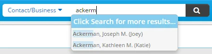 • Enter any specific search criteria in the Search field. Matching records automatically display in a dynamic menu.