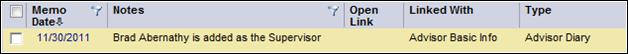Advisor Diary Advisor supervisor changed