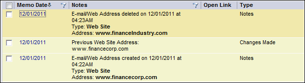 Web address added, deleted or changed