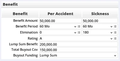 • Benefit Amount: The most money the client can receive per accident/illness.