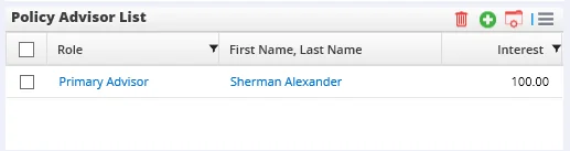 In addition, SmartCommissions users should note that an advisor cannot be deleted from the list if the advisor has linked commission payable records for the policy. This restriction applies even when an advisor is assigned an Old or Reassigned role.
