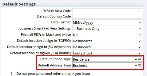 Default Types for New Phone and Address Records