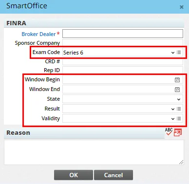 - The FINRA Series drop-down list was renamed Exam Code.