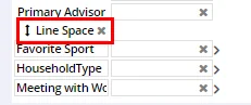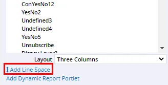 Drag the Add Line Space item into any portlet above or below a field. The words “Line Space” appear in the layout to show where the space has been inserted.