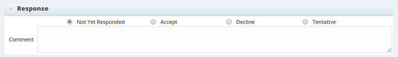Select the appropriate response to accept, decline or mark the activity as tentative. This section also includes a box for entering a comment.
