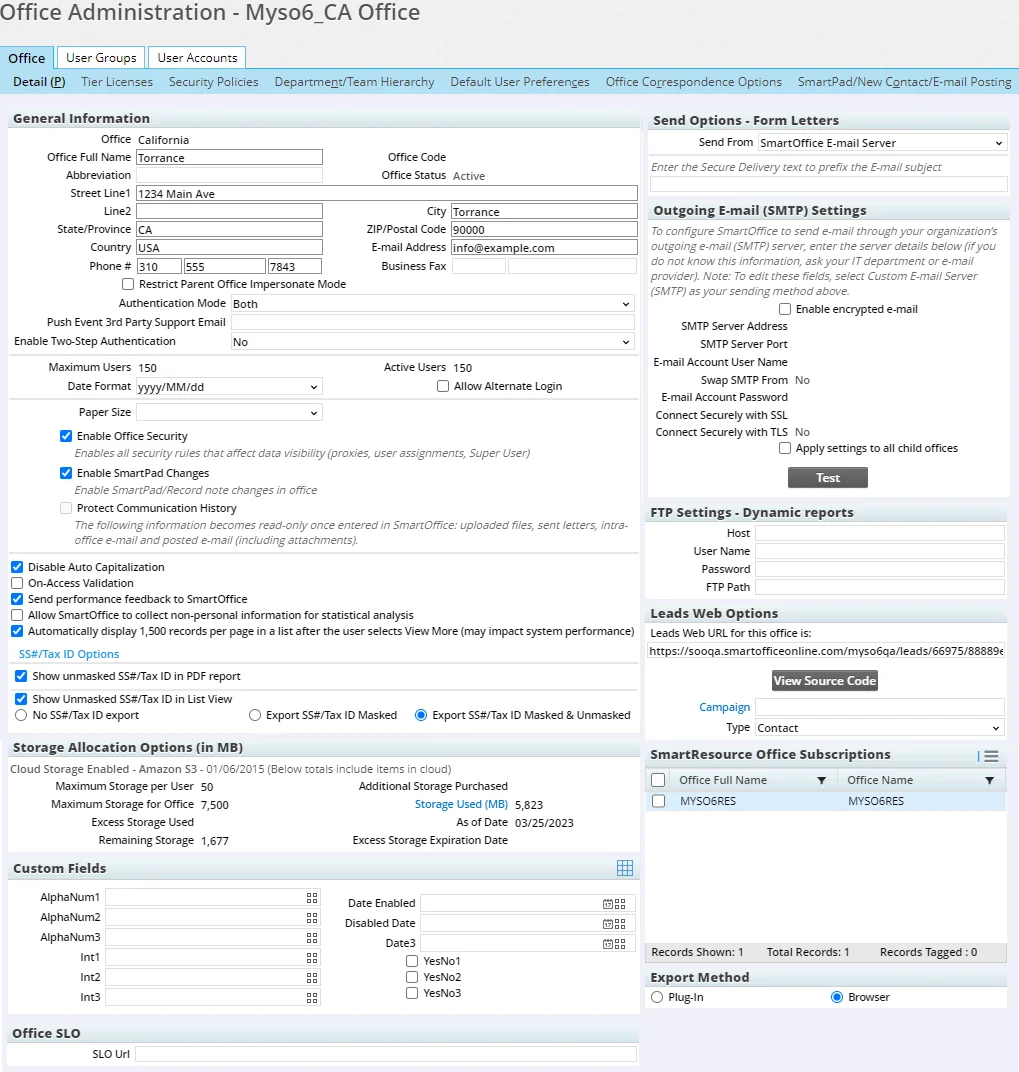 • Active Users: Indicates the number of users who are active within the office. This field is not editable; the value is determined by the number of licenses assigned and in use.