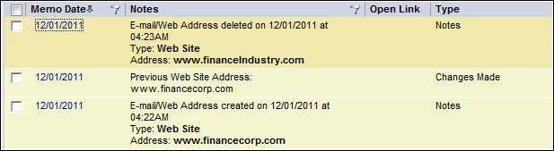 Web address added, deleted or changed