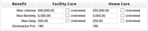 • Max Lifetime: The maximum amount the policy will pay for the care of the client in a lifetime.
