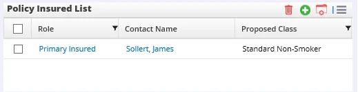 To view details about an existing insured contact, click the contact's name in the Policy Insured List. Adding Impairment Information for an Insured Contact